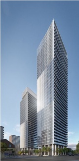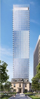 Occupying 44, 000 sq. ft. of land, Television City will consist of two separate high-rise towers connected by a skywalk. Located at 163 Jackson St. West, the proposed development calls for two 32 storey towers. The buildings will feature approximately 485, 424 sq. ft. of retail space. The historic mansion on-site was built in 1850 and will be repurposed and preserved as a part of Television City.